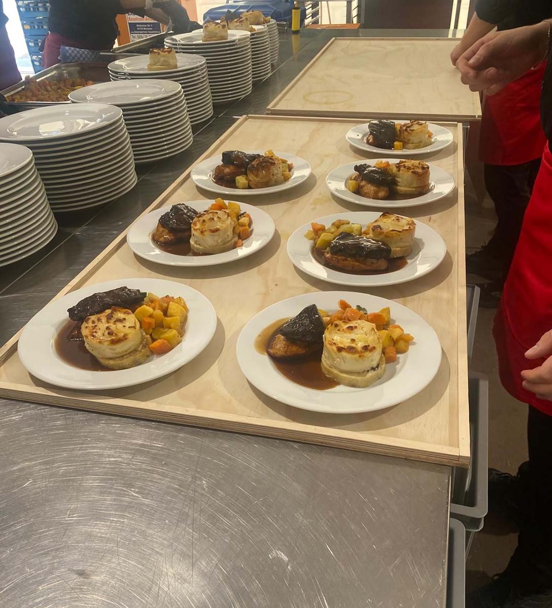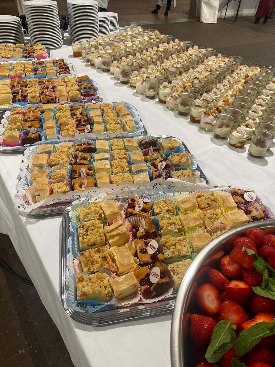6.000 (Sechstausend) Gäste / Personen wurden von unserem Team, der Küchencrew und unserem Service bewirtet und verköstigt. Alleine 14.000 Gebäckstücke wurden für die Vorspeise verarbeitet und 6.000 Dessert Gläser wurden befüllt. 900 Bleche, 36.000 Porzellanteile, 30.000 Bestecke und 9.000 Gläser waren bei dieser Veranstaltung im „Einsatz“ um 414 Tische damit einzudecken.